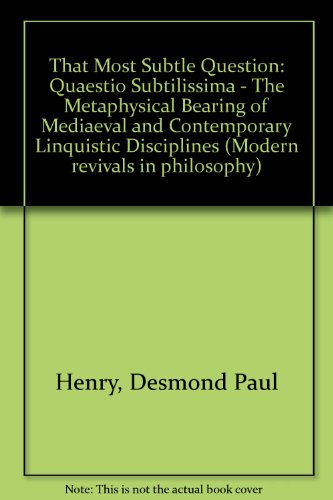 See all customer reviews...That Most Subtle Question (Quaestio Subtilissima : the Metaphysical Bearing of Medieval and Contemporary Linguistic Disciplines), by Desmo PDF